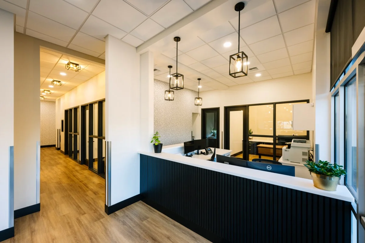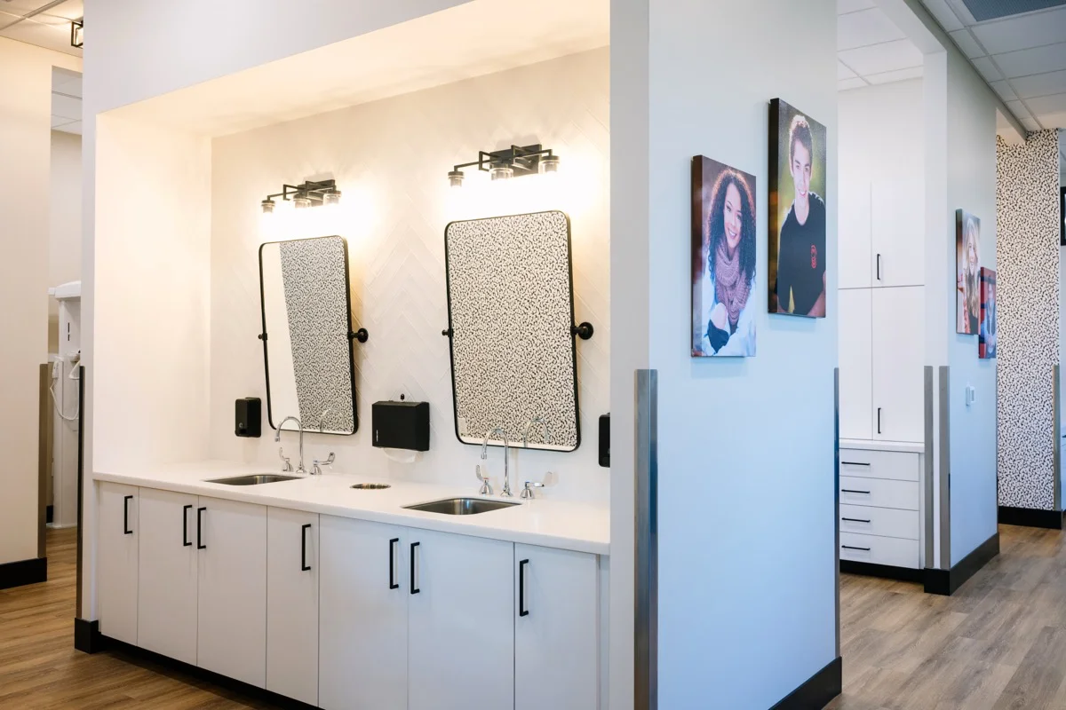 This project delivered a bright, fresh, and welcoming design for both patient comfort and operational efficiency. The new layout features an inviting reception and waiting area, three private offices, five exam chairs in an open treatment area, a dedicated X-ray room, sterilization lab, photography room, and a comfortable break room for staff. The modern design creates a clean, energetic atmosphere that enhances the patient experience.